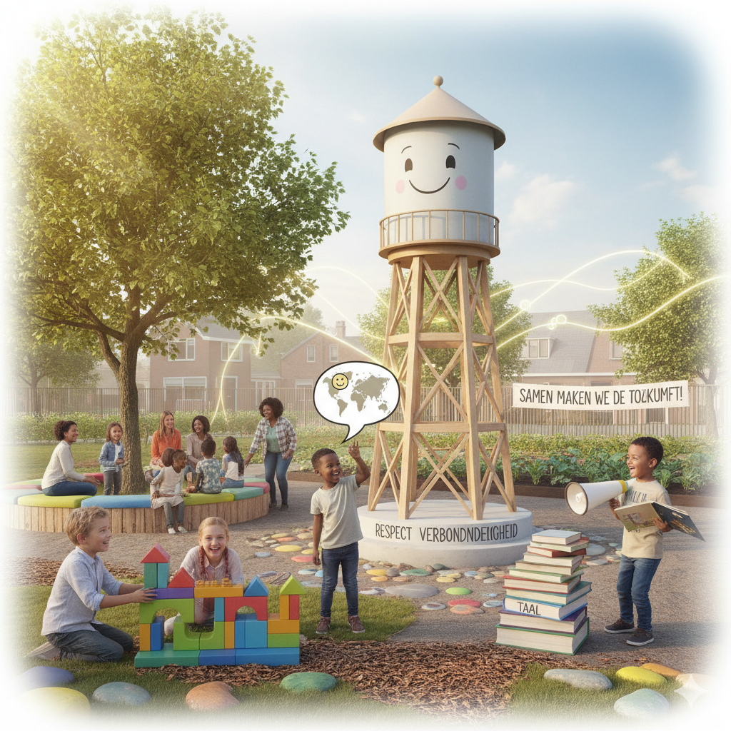 In Basisschool De Watertoren geloven we dat elk kind uniek is en recht heeft op een plek waar het zich veilig en gezien voelt. Respect, verbondenheid en gelijkwaardigheid vormen de stevige basis van onze schoolwerking. We waarderen verschillen en zorgen ervoor dat ieder kind krijgt wat het nodig heeft om te groeien, leren en dromen. Taal is voor ons een belangrijke sleutel: een manier om de wereld beter te begrijpen, zelfvertrouwen op te bouwen en mee te doen. Ook ouders, buurtorganisaties en partners zijn voor ons onmisbare schakels. Samen maken we van onze school een warme plek waar kinderen niet alleen leren, maar ook leren samenleven.
